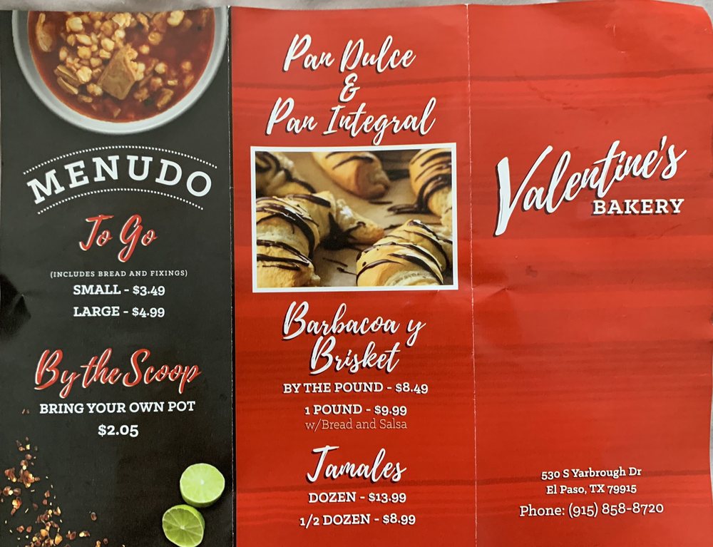 Valentine's Bakery Menu